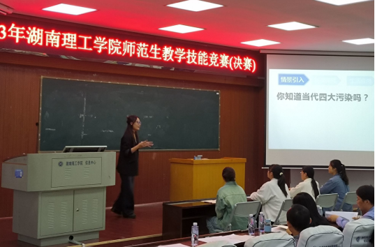 9月26日下午,2023年度湖南理工学院师范生教学技能竞赛(决赛)在我校南院6号教学楼成功举办,并取得圆满落幕。该项比赛由教务处主办,物理与电子科学学院承办,来自全校八个师范专业学院的师生代表,以及教务处、信息中心等单位的领导、工作人员,共300余人参加了本次活动。