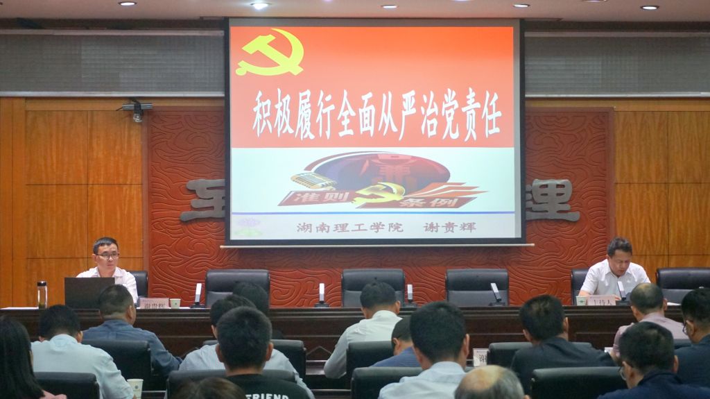 谢贵辉以《积极履行全面从严治党责任》为题,从深刻领会全面从严治党的内涵和积极履行全面从严治党的责任两方面,全面系统讲述了全面从严治党的科学内涵、鲜明特点,全面从严治党的重要性和紧迫性,并结合学校工作实际,深度分析了学校全面从严治党存在六个方面的问题,对学校二级党组织落实全面从严治党的主体责任和监督责任清单进行了解读。
