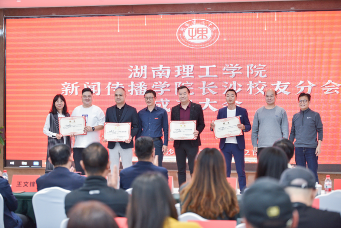 会议表决通过了湖南理工学院新闻传播学院长沙校友分会章程及理事会成员名单。与会领导为理事会成员颁发聘任证书。