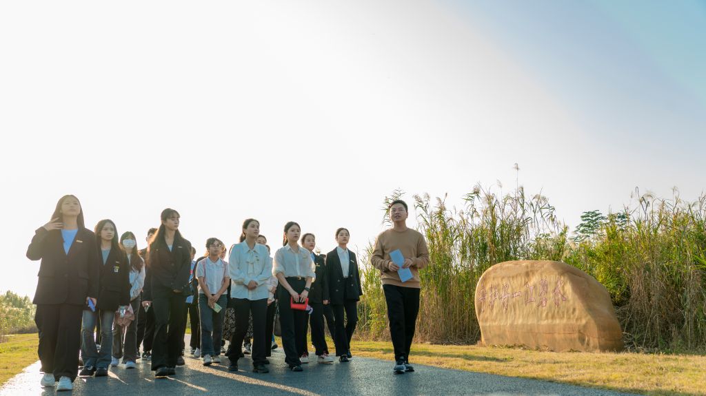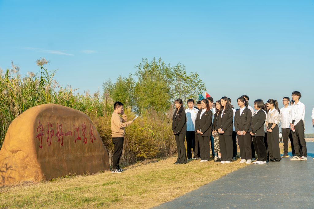 在“守护好一江碧水”展陈馆,师生沿着“长江:母亲之河”、“习近平总书记情系长江”、“守护好一江碧水”、“逐梦·人类文明新形态”等四个篇章,在讲解员的带领下,近距离感受洞庭湖候鸟的欢歌、江豚的微笑、麋鹿的倩影等一系列的人与自然和谐共生场景;通过多媒体场景互动,让师生身临其境地感受到习近平生态文明思想的真理力量和实践伟力。