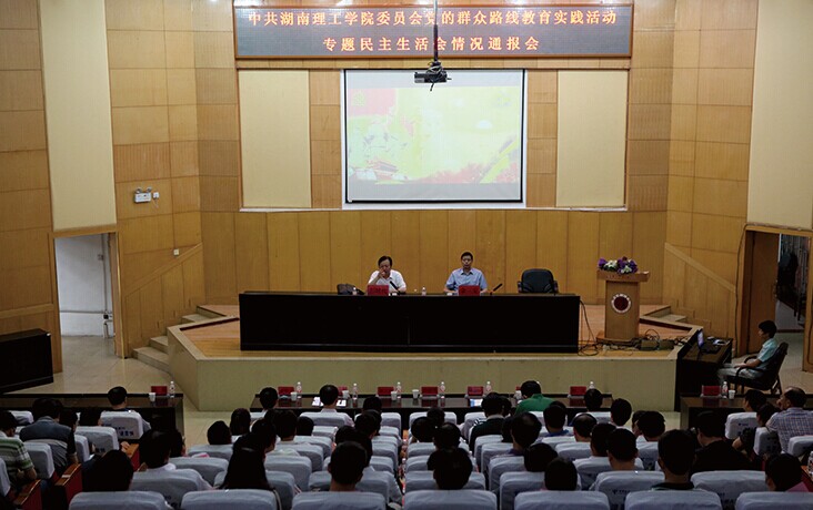 校园网讯:7月15日上午,中共湖南理工学院委员会党的群众路线教育实践活动专题民主生活会情况通报会在图书馆学术报告厅召开,全校在职副处以上干部、学校教育实践活动督导组成员参加会议。会议由党委副书记、校长余三定主持。
