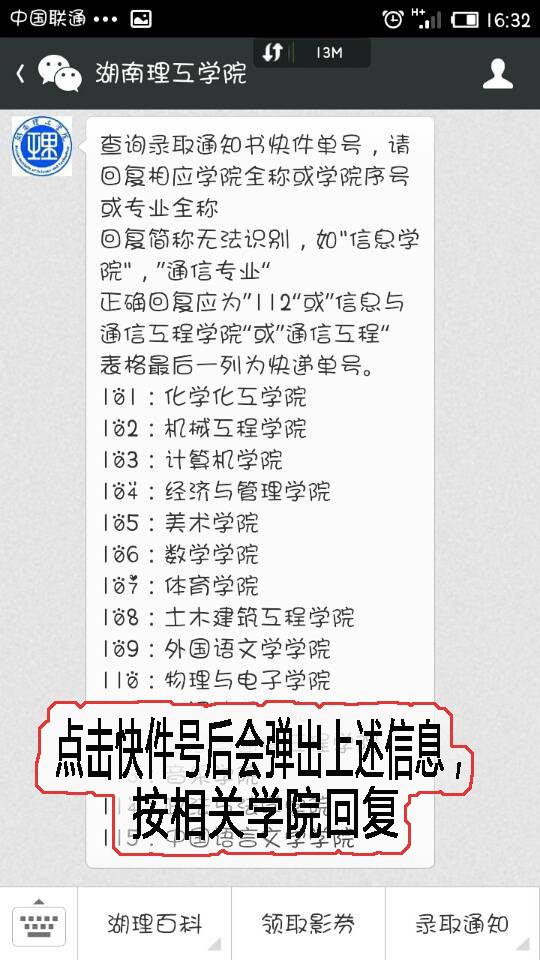 校园网讯 我校2014年新生招生录取工作正在进行中,目前部分录取通知书陆续寄出。为了方便新生及时查询录取通知书的投递情况,我校党委宣传部新媒体中心联合招就处推出通过官方微博、微信查询录取通知书快递单号的功能。