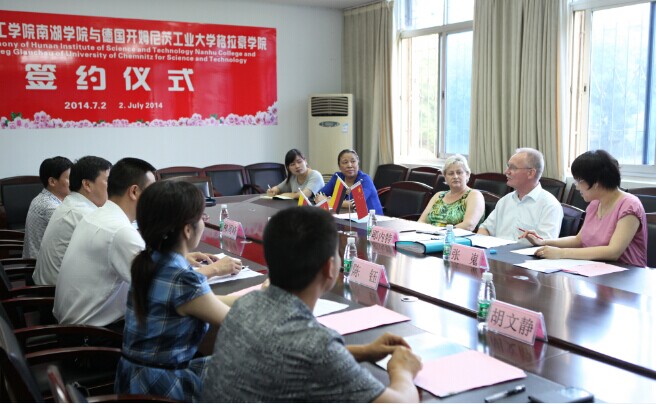 南湖学院负责人代表学院对Dr.Jaehnert一行表示热烈欢迎,并向客人详细介绍了学院的基本情况,双方就今后的合作交流进行了友好会谈。会谈结束后,两院签订了《中国湖南理工学院南湖学院与德国开姆尼茨工业大学附属格拉豪学院友好合作备忘录》,合作的主要内容为南湖学院学生赴德攻读硕士专业项目(3+1+2)和学士专业项目(2+0.5+2)。该协议的签订是南湖学院国际交流工作取得的突破性进展,为学生提供了赴欧洲学习的机会和平台,进一步拓展了学院开放办学的领域和渠道。(南湖学院 责任编辑/楚霖)