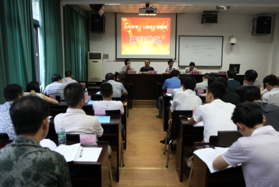 校园网讯 6月5日上午,岳阳市第十七期校长培训班开班典礼在东院1302教室举行。副校长易健民出席,成教学院负责人及全体学员参加了此次典礼。