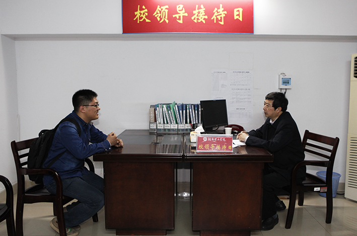 校园网讯 4月2日,我校第二次“校领导接待日”顺利进行,晚上,副校长易健民与宣传部、学工部、教务处、后勤处、保卫处等单位负责人在学校勤工助学中心再次倾听学生心声。
