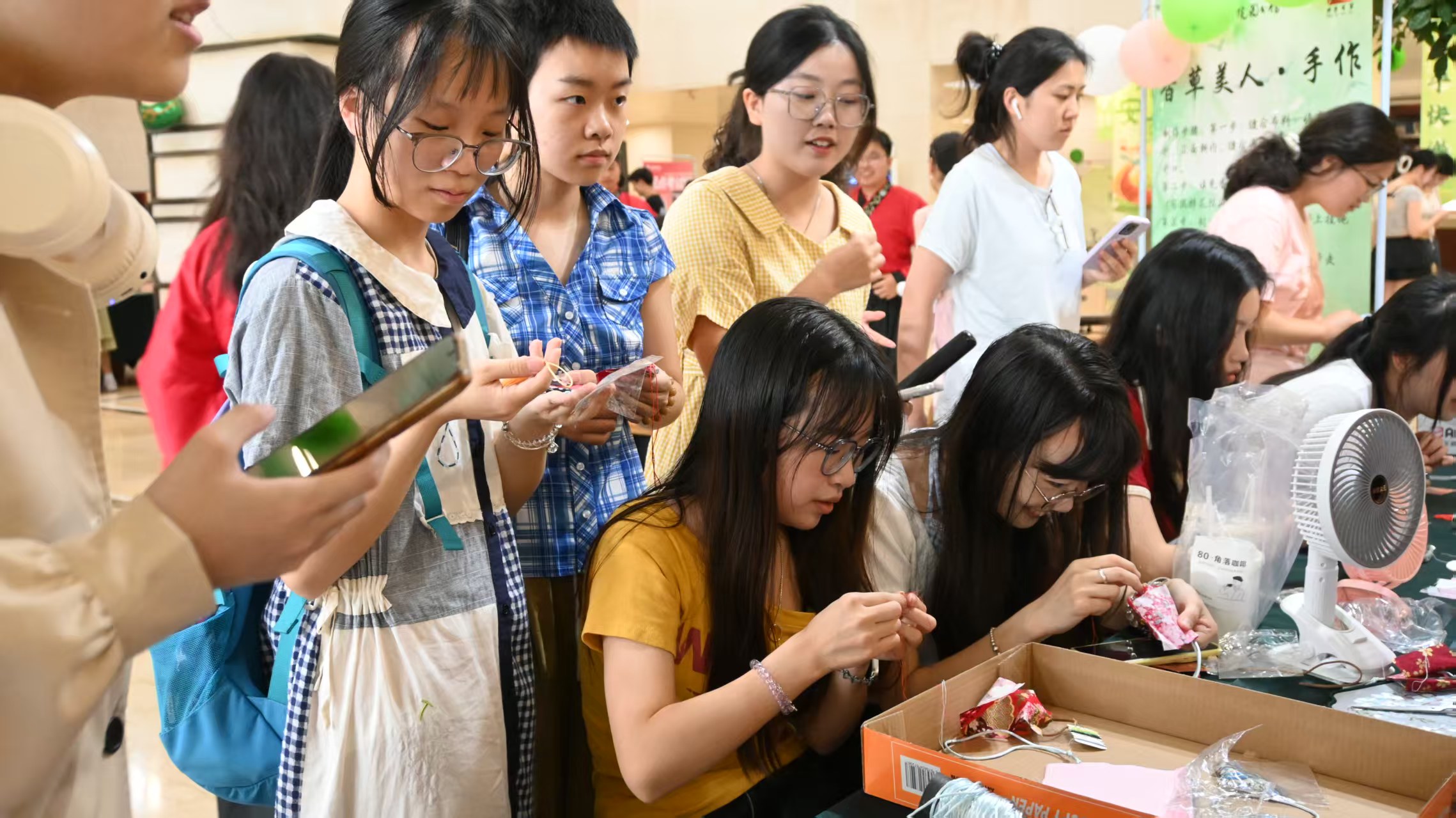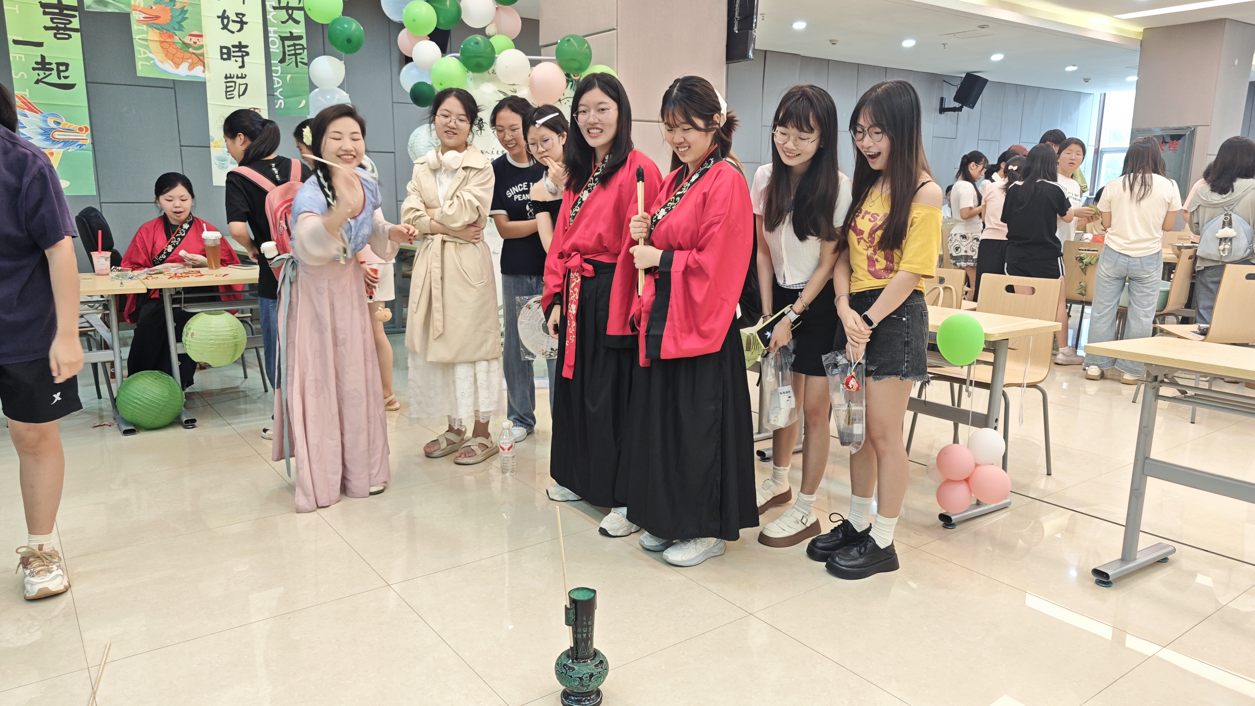 同学们或三五结伴同行,或身着古服款款而来,粽香与书香交织,诗词共笑语飞扬,活动现场古韵萦绕,笑语纷飞,其乐融融,传统端午佳节的千年文化意蕴在这里完全具象化,流淌不息。