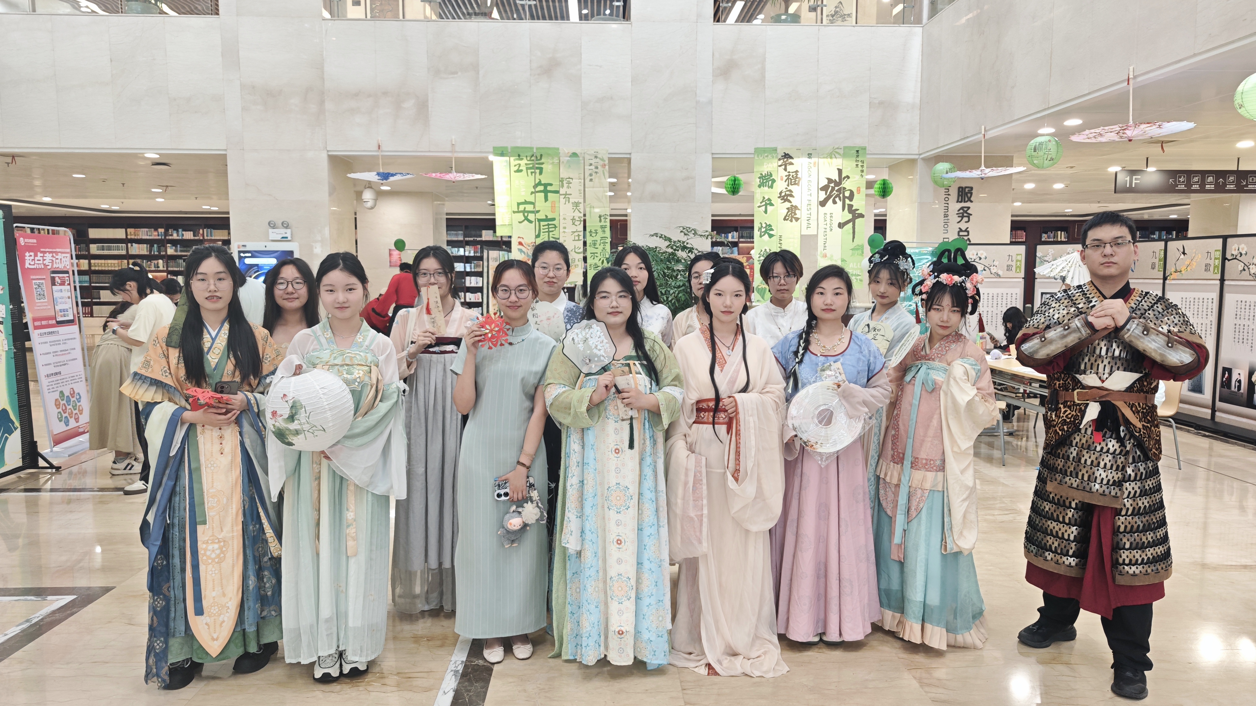 校园网讯 当书香遇上古风,会碰撞出怎样奇妙的火花呢?在第四届湖南旅游发展大会在岳阳召开之际,5月27日,湖南理工学院第三届屈原文化季特别活动——“屈海拾遗 楚韵华章”古风游园会在图书馆一楼大厅盛大开幕。图书馆以端午为媒,以屈原为名,以书香为笺,诚邀广大师生读者前来赴一场千年文脉之约。