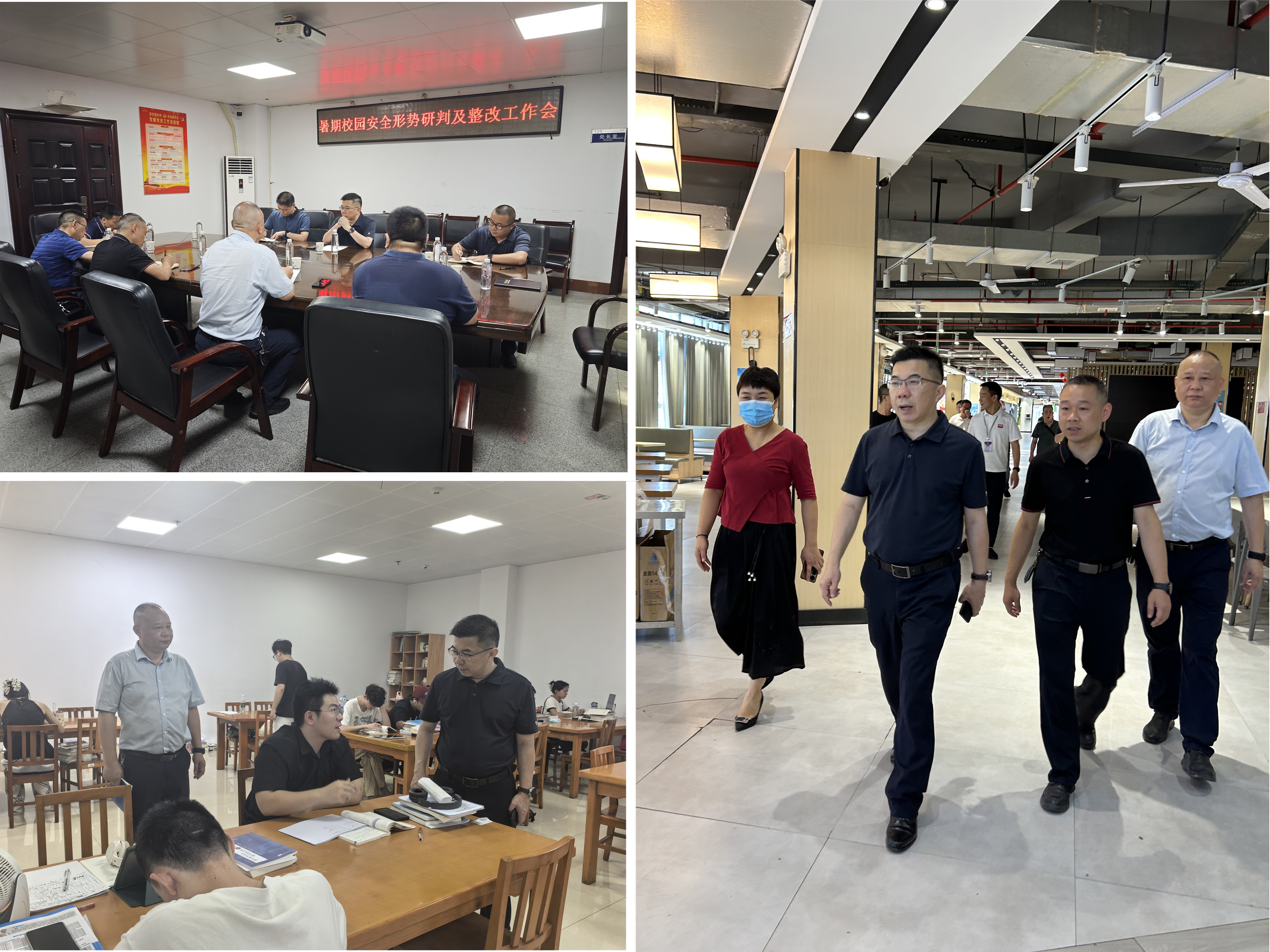 检查组深入学校教学场地、图书馆、学生宿舍园区、实验室、食堂、经营门店等重点场所进行了现场检查。检查中,徐振祥对发现的安全隐患要求即查即办、立行立改,并就抓好暑期留校学生管理、施工安全、消防安全等方面的安全工作提出具体要求,指出相关责任单位要高度重视安全问题,坚决克服麻痹思想和侥幸心理,牢固树立安全无小事的意识,用“一失万无”的底线思维努力做到校园安全稳定“万无一失”,要认真做好整改,从源头上消除安全隐患,切实做好留校师生学习、生活安全保障工作,确保暑期校园安全稳定。