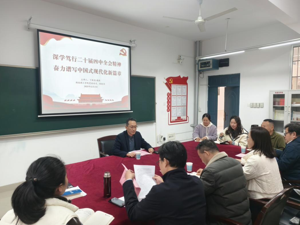 校园网讯 12月2日下午,学校党委委员、副校长丁跃浇以“深学笃行二十届四中全会精神 奋力谱写中国式现代化新篇章”为主题,为机械工程学院师生党员代表讲授专题党课,并对学院党委理论学习中心组2025年度第23次集中学习进行督导。