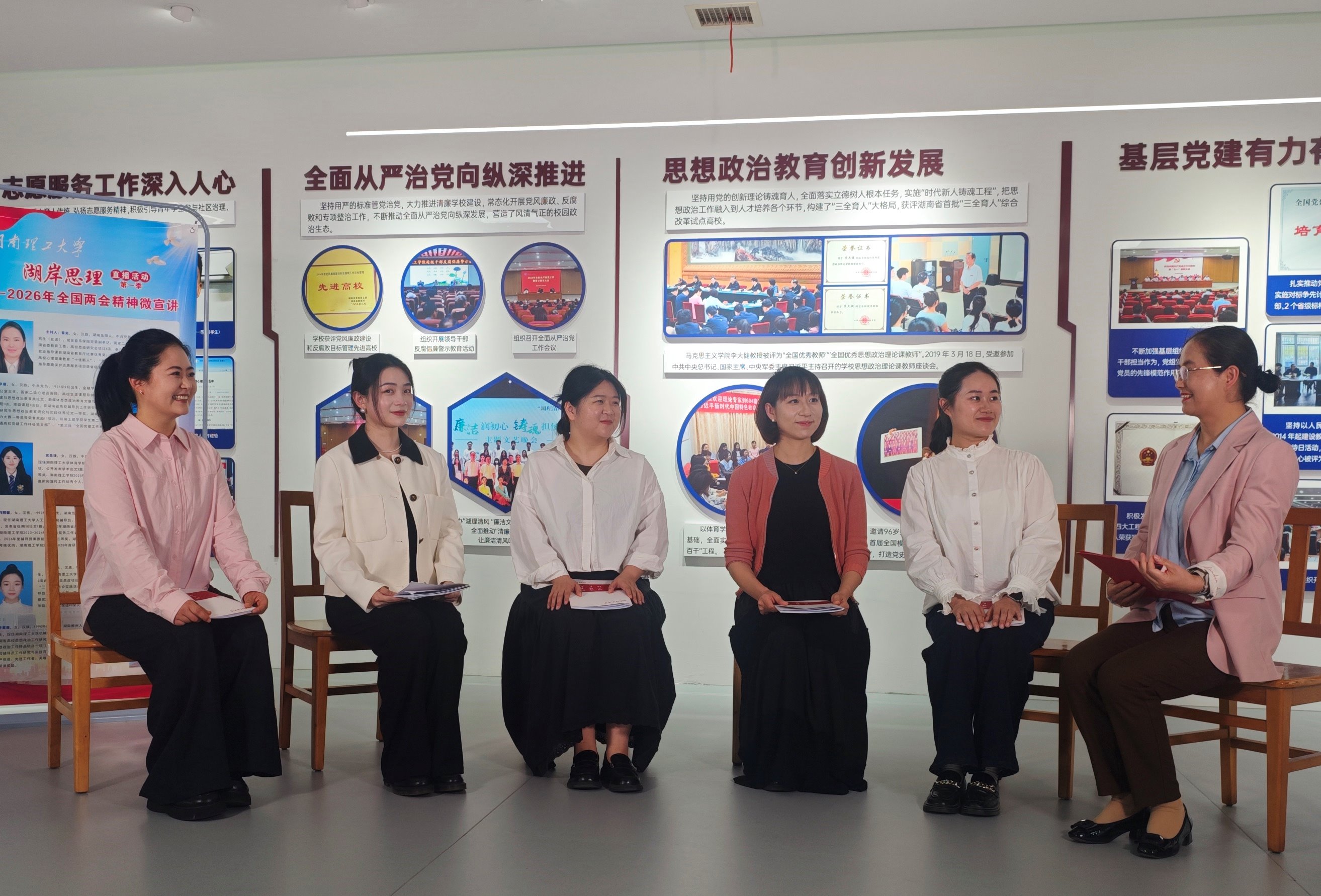 校园网讯 4月28日,由党委宣传部、学工部、音乐学院党委联合主办,“湖岸思理”辅导员成长赋能团队承办的“湖岸思理”直播活动第一季——2026年全国两会精神微宣讲顺利开播。来自学校体育学院、土木建筑工程学院、人工智能学院、数学学院、机械工程学院的六位辅导员代表依次开讲,吸引线上5000余名观众观看,收获点赞20000+。