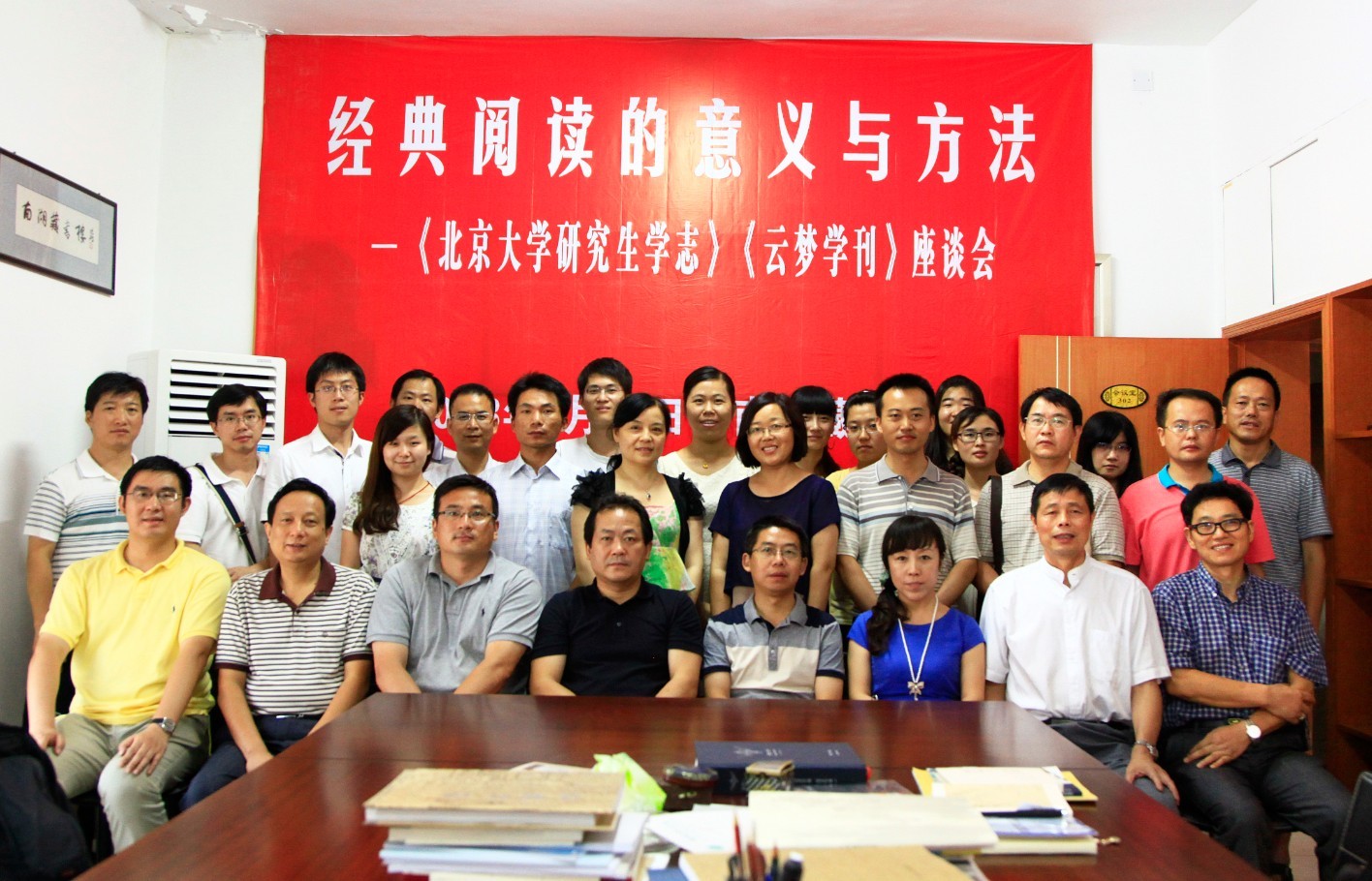 校园网讯:2013年8月21日,由《北京大学研究生学志》与《云梦学刊》共同主办的“经典阅读的意义与方法”座谈会在我校举行。参加座谈会的有来自北京大学、中共中央党校、中国社会科学出版社、《湘水》编辑部、岳阳市教育局、岳阳市八中、中湘实业有限公司以及湖南理工学院两办、期刊社、团委、中文学院、新闻学院等单位的人士,总计30余人。座谈会分三个时段进行,由北京大学团委研究生与青年工作部部长石运佳、中共中央党校青年教师王巍、《北京大学研究生学志》主编俞祺主持。