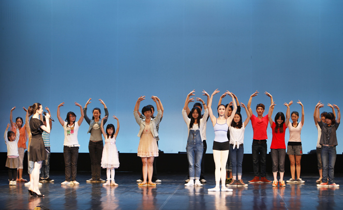 正式演出开始前,国家一级演员、中央芭蕾舞团首席主持朱妍向观众介绍了芭蕾艺术发展的历史和不同学派,以及世界和中国芭蕾的现状。她重点讲解了“开、绷、直、立、轻、稳、准”七个字,这七个字是欣赏芭蕾舞的要领。她还现场邀请数十位学生与演员进行互动,跟演员学习一些基本的舞蹈动作,向观众展示芭蕾舞演员幕后基本功训练的特点,由浅入深,循序渐进。现场气氛非常热烈,让大家在欣赏美的同时获取了芭蕾的相关知识。