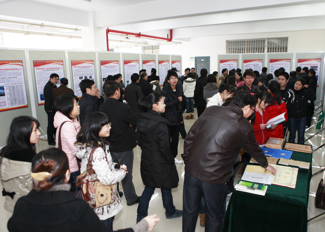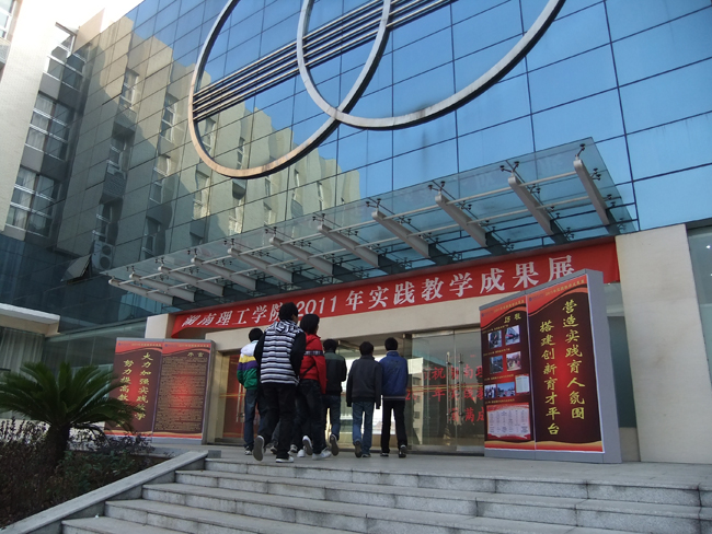 今年实践教学成果展的主题为“实践育人,创新育才”,本次成果展落实彭书记去年参观实践教学成果展的指示,固定展出位置,延长展出时间,注重展出实效,让更多的师生能现场参观。本次展览组委会组长钟华副校长要求教务处要高标准组织好我校首次高规格室内展览并做出具体布署。教务处在年初就着手规划室内实践教学成果展展区布置,充分利用逸夫实验楼大厅空间,集中展示了2011年15个教学院主要实践教学成果,共展出100块展板和126件实物及大量实践教学资料汇编,系统的回顾了一年来实践教学取得的丰硕成果。为本次展览全部统一展板规格,由教务处组织编辑,各教学院只需提供原始素材和实物及资料汇编,这样既有效为各学院减轻负担,又确保了展板的一致性和展区的整体性。展览完后展板将送至各学院作为实验室和教研室文化氛围建设。