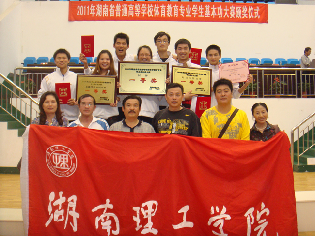 校园网讯 9月25日,从长沙传来特别喜讯,体育学院参加2011年湖南省普通高等学校体育教育专业学生基本功大赛,囊括全部项目一等奖,获得团体总分第一名,基础理论知识和运动技能第一名,其中,专业基础理论、外语、计算机操作、篮球、田径等五项获一等奖,大赛总分400分,我校体育学院取得382分的好成绩。