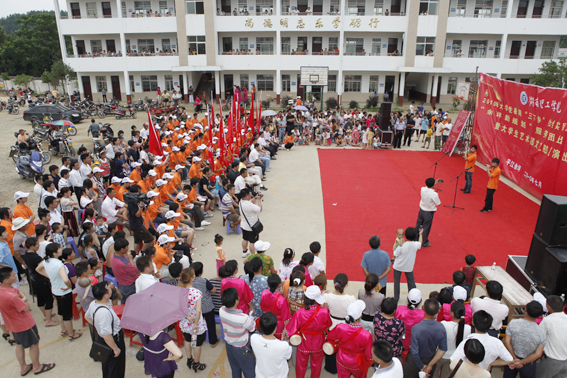 校园网讯 服务新农村,建设新家园。7月11日,我校百余名大学生志愿者来到革命老区湖南平江县余坪乡,至此,我校2010年大学生暑期“三下乡”实践活动正式展开。我校党委委员、纪委书记刘亦工,团市委副书记白再兴,平江县政协副主席童缅思,余坪乡党委书记赵取平,余坪乡乡长李泓等参加了启动仪式。我校校团委书记陈超文主持启动仪式。