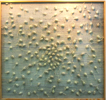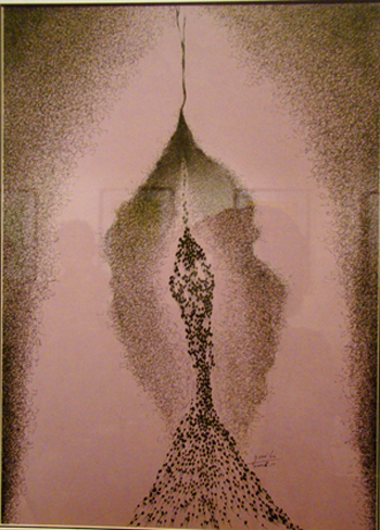 展览以“两种图示——蝌蚪、树叶”为主题,“蝌蚪”集合阵势宏伟,把一个潮涨的“洞穴”包围,如水一般的柔弱月月红,微笑的颤抖在蒂之中;展览作品类型包括国画工笔画,写意画,纤维艺术,素描等;展览主题鲜明,表现手法多样,作者匠心独运。素描作品轻松简洁,编织作品鲜艳宏大,工笔画细腻写实无不深深吸引着观摩者,在视觉上给人冲击,让人揣测,让人着迷。