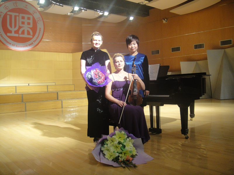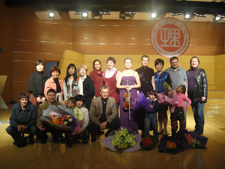 俄罗斯外教安娜与莲娜及其学生在小提琴独奏会后合影留念