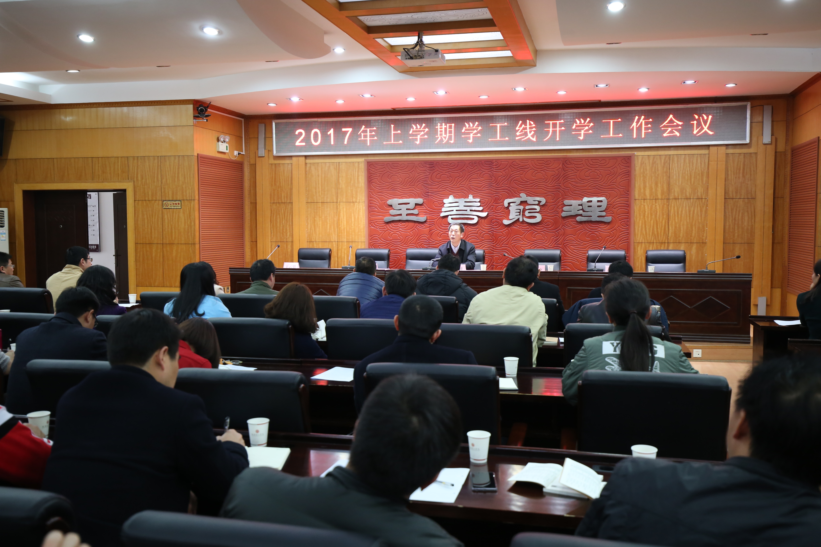 校园网讯 2月16日上午,2017年上学期学工线开学工作会议在1号办公楼214会议室举行,校领导邱绍雄、徐小立,学工部、团委负责人及各学院、南湖学院分管学生工作负责人、辅导员参加会议。