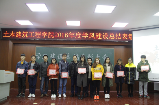 校园网讯 3月16日晚,土木建筑工程学院2016年度学风建设总结表彰大会于6栋学术报告厅举行。土建学院相关负责人、各年级辅导员、班主任代表以及学生代表200多人参加了表彰大会。