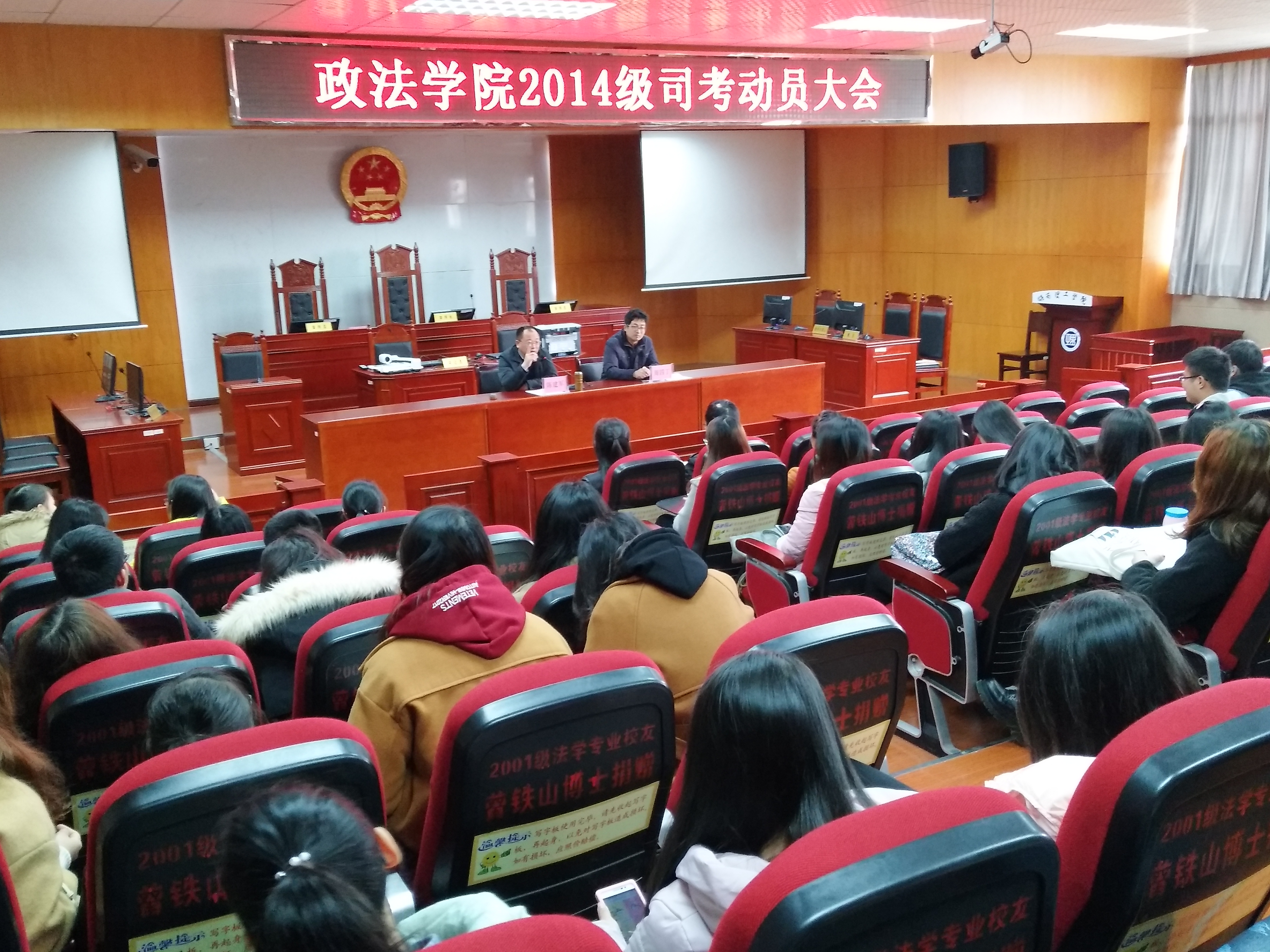 校园网讯3月21日下午,学院在模拟法庭召开2014级学生司法职业资格考试动员会。政法学院负责人与会,2014级法学专业全体同学参加会议。