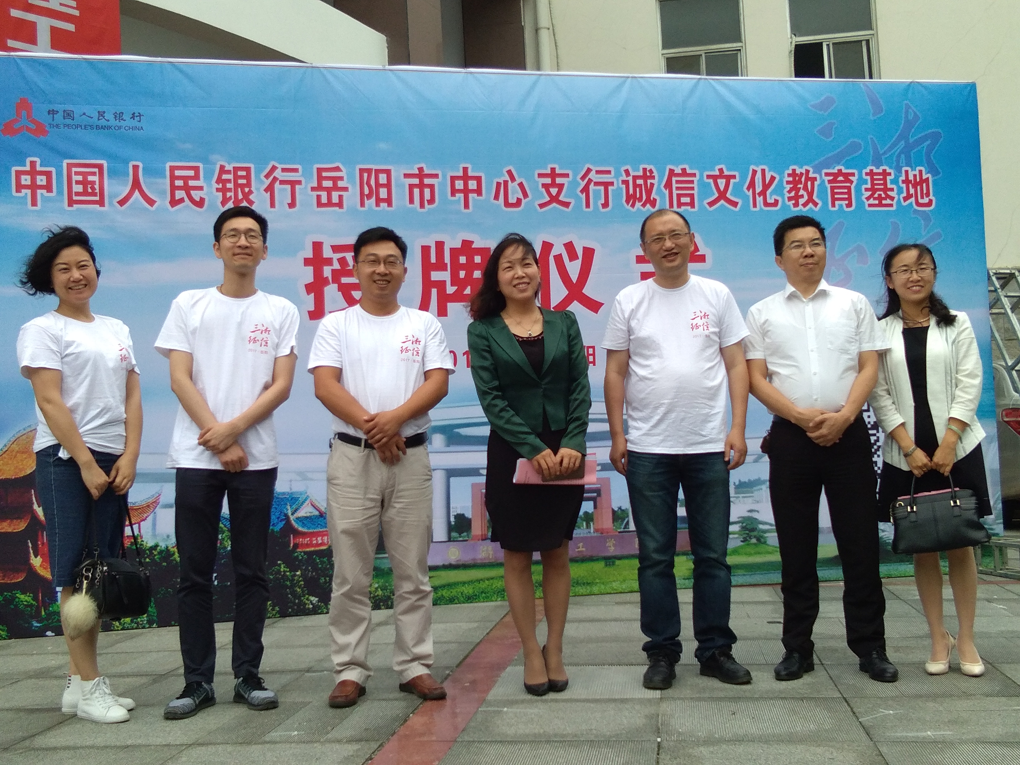 校园网讯 诚信是“言必行,行必果”的言行一致,诚信是“君子一言,驷马难追”的说到做到。6月14日下午3点,我校诚信文化教育基地授牌仪式在2号办公楼学术报告厅举行。中国人民银行长沙中心支行征信管理处副处长吴卫,中国人民银行岳阳中心支行党委委员、副行长覃兆勇,副校长徐小立,学工、团委相关负责人出席,各学院学生党支部书记、学生党员代表参加授牌仪式。党委学工部负责人主持仪式。