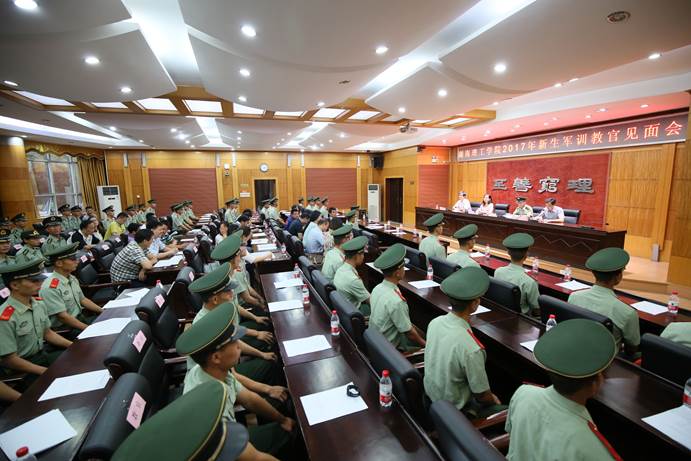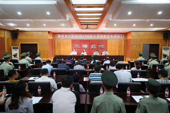校园网讯 9月10日下午,湖南理工学院2017年新生军训教官见面会在1号办公楼214会议室举行。副校长徐小立、武警岳阳支队副参谋长黄明亮、党委学工部、各学院学生工作负责人以及相关工作人员出席此次会议。