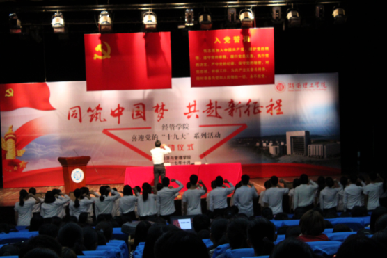 校园网讯10月10日晚,经管学院在学校演播厅隆重举行“喜迎党的十九大”系列活动启动仪式。学校党委委员、组织部部长刘创出席仪式,经管学院负责人、全体党员、预备党员以及入党积极分子参加本次活动。