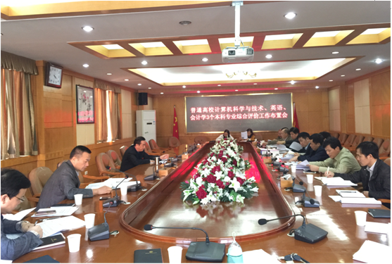 校园网讯 10月20日下午,我校在319会议室召开迎接湖南省普通高校计算机科学与技术、英语、会计学3个本科专业综合评价工作布置会,会议由副校长钟华主持,外语、计算机、经管学院院长,宣传部、学工部、教务处、科技处、招就处、人事处、研究生处、资产处、国际交流处、评估中心、社科办、继续教育学院、图书馆等部门负责人参会。