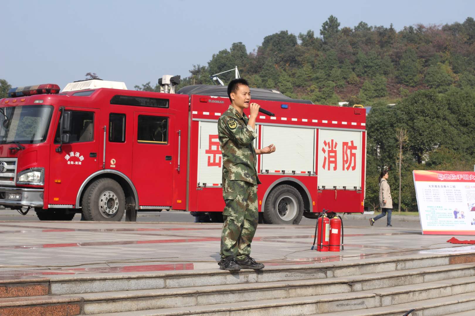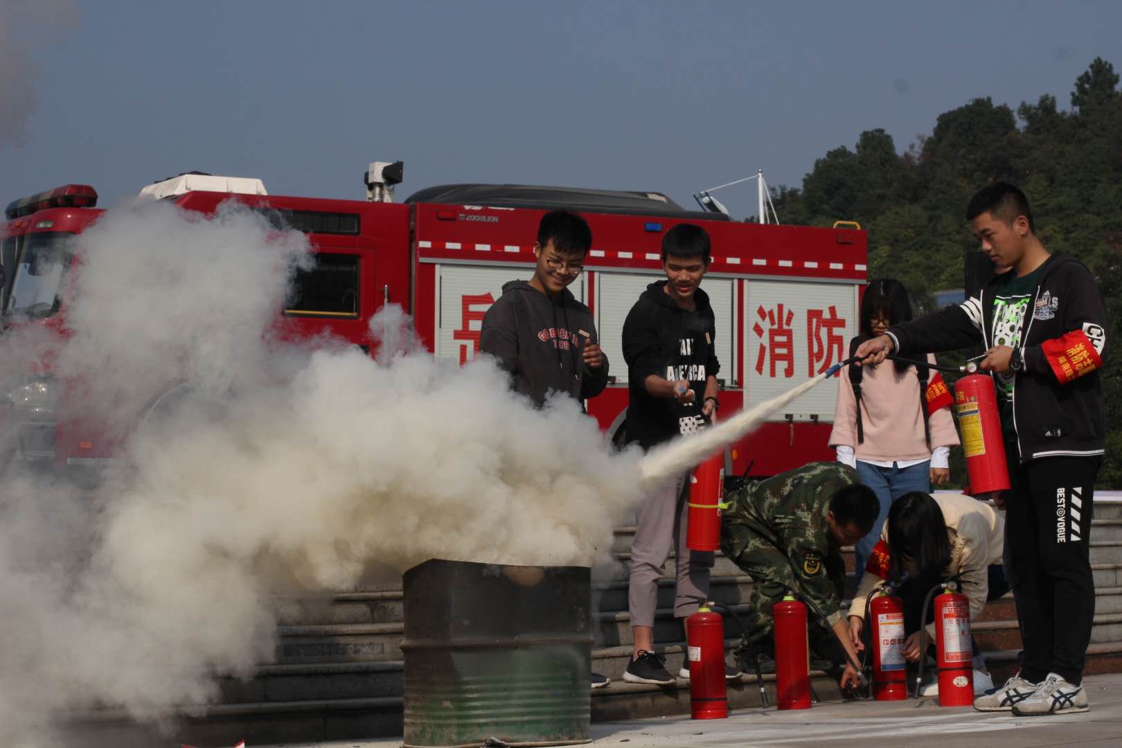 期间,武警岳阳消防支队的官兵现场演示了消防器材的使用要领,部分学生代表还在预设的消防火点进行了亲身体验。(保卫处/姜剑鸣 责编/陈绪清)
