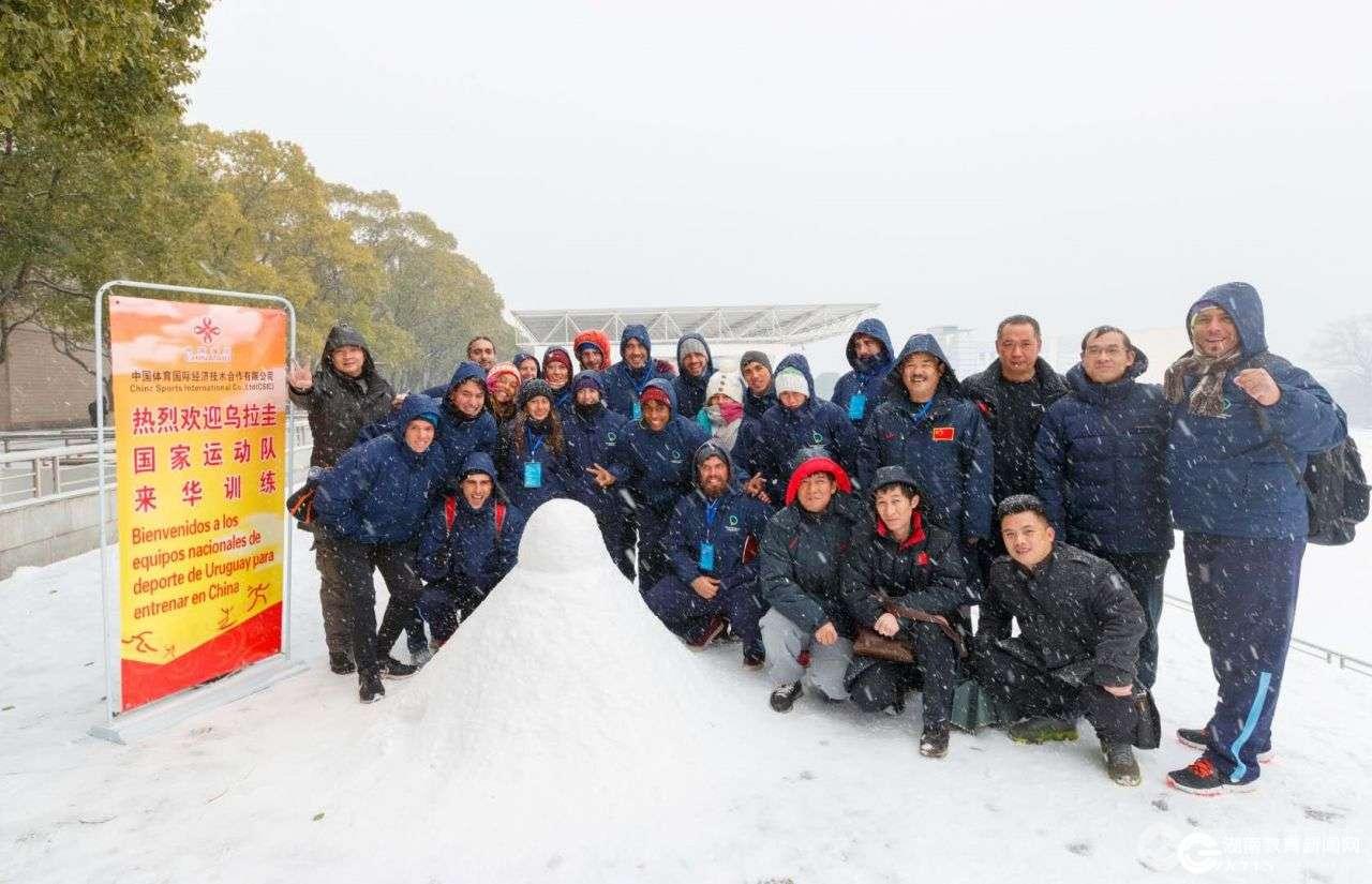 本网讯(通讯员 王庆华 刘璋) 1月27日,伴着新年第一场瑞雪,来自乌拉圭国家田径队、跆拳道队、举重队的教练员、运动员等一行19人来到湖南理工学院,他们将在该校进行为期90天的学习交流和训练活动,这也标志着2018年援乌拉圭第二期体育技术援助项目在湖南理工学院正式启动。