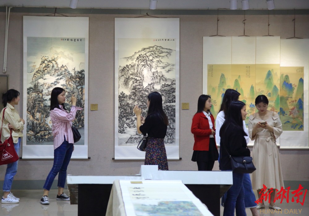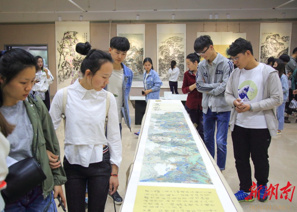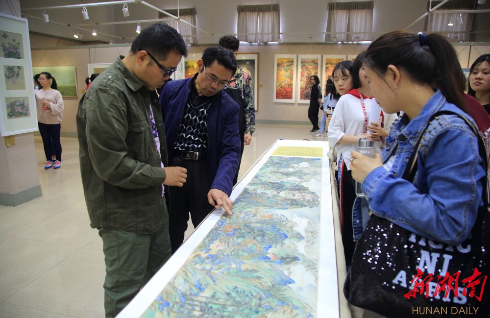 专家与学生在现场赏析作品。参展者表示,最终我们需要到达这般:“求大道以弭兵兮,凌万物而超脱,觅知音固难得兮唯天地与作合”。 湖南日报记者 徐典波 摄影报道