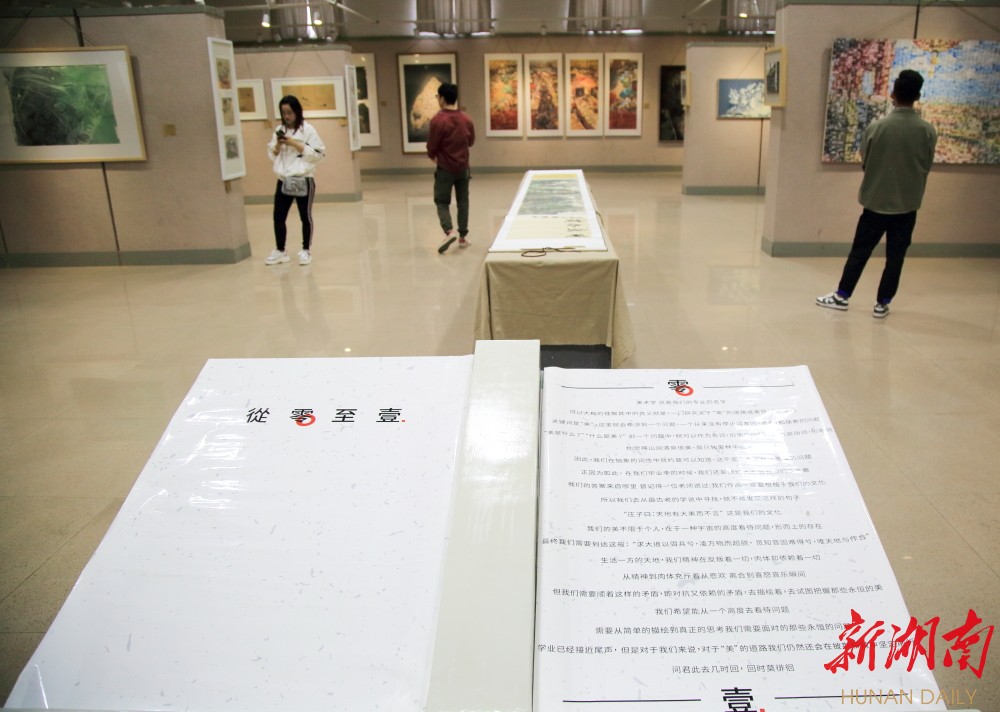 本次毕业展览的主题是“从零至壹”,学生在展览前言中写道:需要从简单的描绘到真正的思考我们需要面对的那些永恒的问题,学业已接近尾声,但是对于我们来说,对于“美”的道路,我们仍然还会在披荆斩棘中坚定前行。 湖南日报记者 徐典波 摄影报道