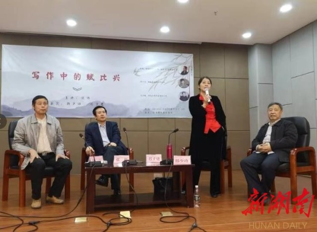 迟子建还谈到了对湖南、岳阳的印象,她说:“我生活在大兴安岭,那里一年中大多数时候白雪皑皑,尽管山区风景优美,走入山林的人很少,描绘、记载那片土地的人很少。但湖南这片土地,气候宜人,滋养了一代代杰出文学家,诞生了许多伟大政治家。岳阳也是山青水秀,是想象力能得到萌芽生长的空间,是文学艺术家创造的理想圣地。”