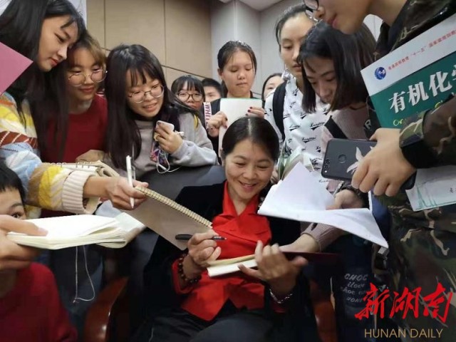 无数莘莘学子涌向迟子建,拥着迟子建。她坐在“人山”之谷,不停地签字,始终带着微笑,优雅从容,谦和温暖,一如我们头顶上那温煦的秋阳……