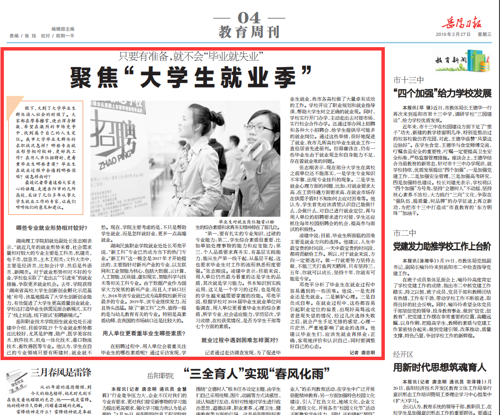 最近记者带着这些大家关心的话题,走进岳阳市的几所高校,采访了几位多年从事大学生就业工作的专家,让我们听听他们的意见和建议。