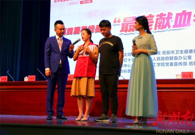 今年5月,岳阳市文明办、湖南理工学院、市卫健委、团市委、市红十字会和市政府献血办联合发起此次公益活动。经考察、评审,丰小玉等30名志愿者获评岳阳“最美献血者”,秦国权等22名志愿者被评为“最美献髓者”,汪泽文等20名志愿者荣膺无偿献血“最美志愿者”,龚成明等20名志愿者获评无偿献血“最美组织者”,中石化巴陵石化公司青年志愿者协会等40家单位被获评“最美公益团队”。