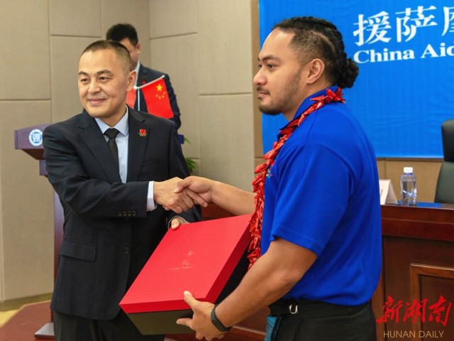 湖南日报·新湖南客户端6月17日讯(记者 胡旻 通讯员 肖杰)昨日上午,我省“援萨摩亚2019年太平洋运动会体育技术援助项目”闭班仪式在岳阳湖南理工学院举行。仪式现场,中萨双方代表盛赞中萨友谊,中方代表向萨方赠送礼物。