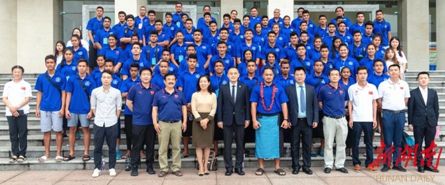 中国体育国际经济技术合作有限公司总经理助理范凯、湖南理工学院副校长徐小立、湖南体育国际文化交流中心有限公司董事长崔杰阳等领导和嘉宾以及萨摩亚2019年来华训练运动员教练员出席仪式。
