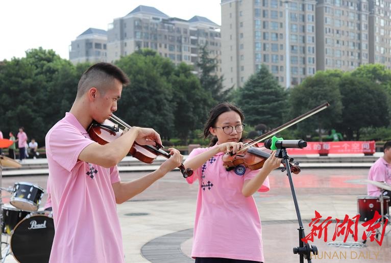 湖南日报·新湖南客户端7月18日讯(见习记者 吴广 通讯员 田夏)今天下午,岳阳市气温高达32℃,但比气温更高的是南湖广场的人气。湖南理工学院暑期社会实践志愿队联合岳阳市第十五中学150名师生在此举行“快闪合唱”活动,宣传推广垃圾分类,吸引400余市民驻足观看。