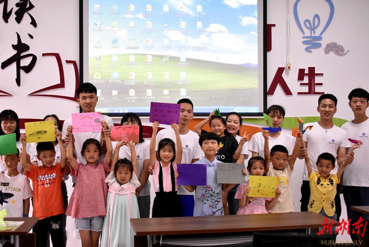 湖南日报·新湖南客户端8月25日讯(屈艳 李乐晗 唐寮)“昨天我们一起用蜡笔描画了自己希望住的房子,今天我们一起来学习剪纸。”今天下午,酷暑未消,湖南理工学院学生夏凯雄和同学来到岳阳市岳阳楼区学院路社区,陪伴小朋友们度过愉快的下午时光。今年暑假,湖南理工学院 “爱·雏鸟”志愿服务团队开展“关爱留守儿童,温情服务社会”暑期实践活动,陪伴孩子们一起看书、做游戏,为他们打造“多彩”假期。