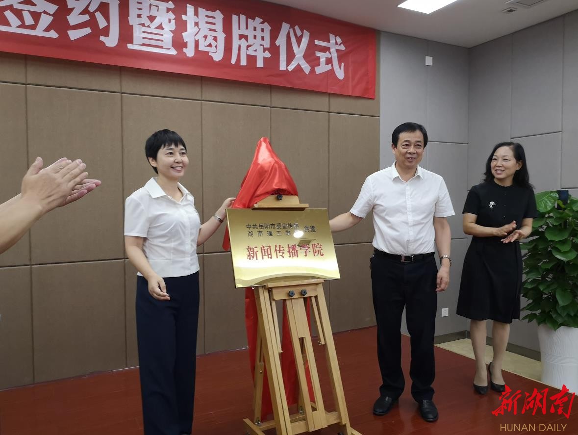 湖南日报·新湖南客户端9月30日讯(记者 徐亚平 通讯员 王琳楠)今天上午,岳阳市委宣传部与湖南理工学院举行共建新闻传播学院签约仪式。双方签订了《部校共建新闻传播学院协议》并揭牌。这是我省市州委宣传部与地方高校首次共建新闻学院。