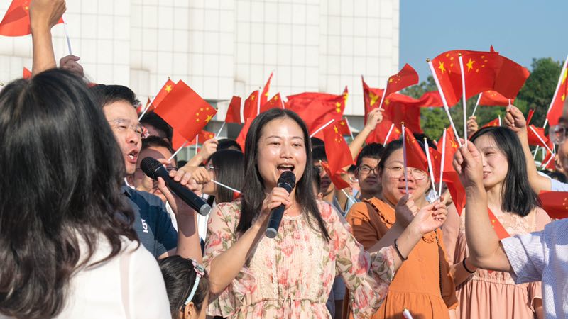 岳阳日报全媒体讯(记者 唐忠明)10月1日早上八点,湖南理工学院举行“庆祝新中国成立70周年”升旗仪式,全体校领导和2000余名师生参加。升旗仪式结束后,教师代表献唱《今天是你的生日我的中国》,全场合唱《我和我的祖国》,用歌声献礼祖国华诞。
