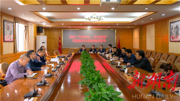 湖南理工学院党委书记李明作了表态发言。他表示,学校党委将结合创大申博的目标任务,严格落实省委主题教育办公室和指导组的意见,将主题教育落实落细。