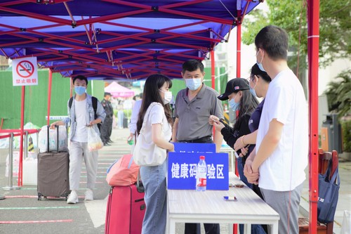 学生出示健康码,核验通过才能进入校园