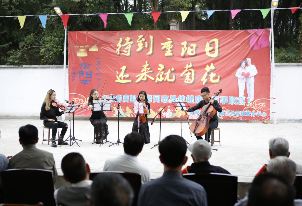 活动现场,来自音乐学院、体育学院的志愿者们,还为老人们带来了精彩的文艺表演。学校还特意邀请80岁以上老教师代表坐在前排,由学生志愿者为他们佩戴“健康老人”红色条幅,并奉上健康清茶。学校党委书记李明拉着老人们的手,充满温情地说:“学校今天的发展成就离不开大家的辛勤付出和无私奉献。我们将想尽千方百计,让离退休老教师也能共享学校改革发展成果。”