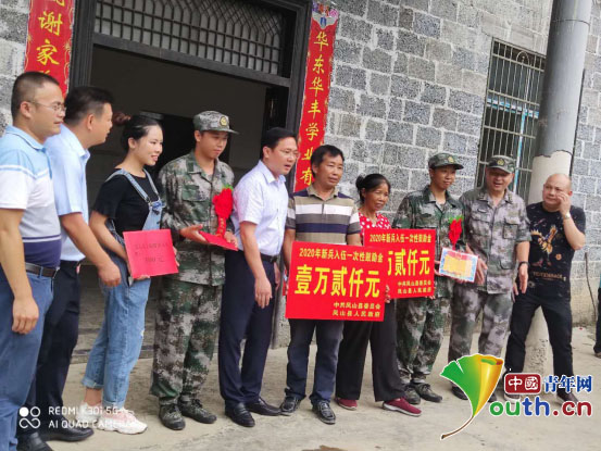 志愿者张凯参加凤城镇凤凰村双胞胎兄弟入伍送兵活动。图为活动现场。张凯 供图