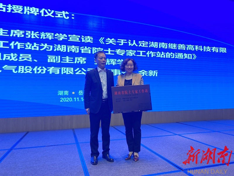 陈爱林为桂卫华颁发“岳阳市‘创新引领、开放崛起’发展战略顾问兼节能环保和石油化工装备产业链首席科学家”聘书,为王耀南颁发“岳阳市‘创新引领、开放崛起’发展战略顾问兼电子信息与人工智能产业链首席科学家”聘书。会议宣读了《关于认定湖南继善高科技有限公司等10家院士专家工作站为湖南省院士专家工作站的通知》,并为湖南中科电气股份有限公司省级院士工作站授牌。中国化工学会岳阳服务站、省自动化学会岳阳服务站、省石油学会岳阳服务站、省企业科协联合会岳阳服务站、湖南大学电气与信息工程学院实习实践基地相继揭牌。