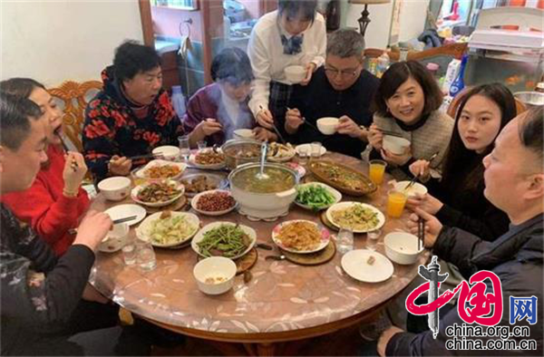 万娟霞是湖南理工学院美术与设计学院的党委副书记,而赶来和他们一家人共度除夕的是学院大二学生贾飞贺。受河北疫情影响无法返乡的贾飞贺,寒假留校就地过年期间得到了学校的妥善安置和各级领导老师的关心关怀。为了让留校学生度过一个更有温度、有意义的除夕,该校的老师们主动邀请这些学生到家中吃团圆饭,共度佳节。