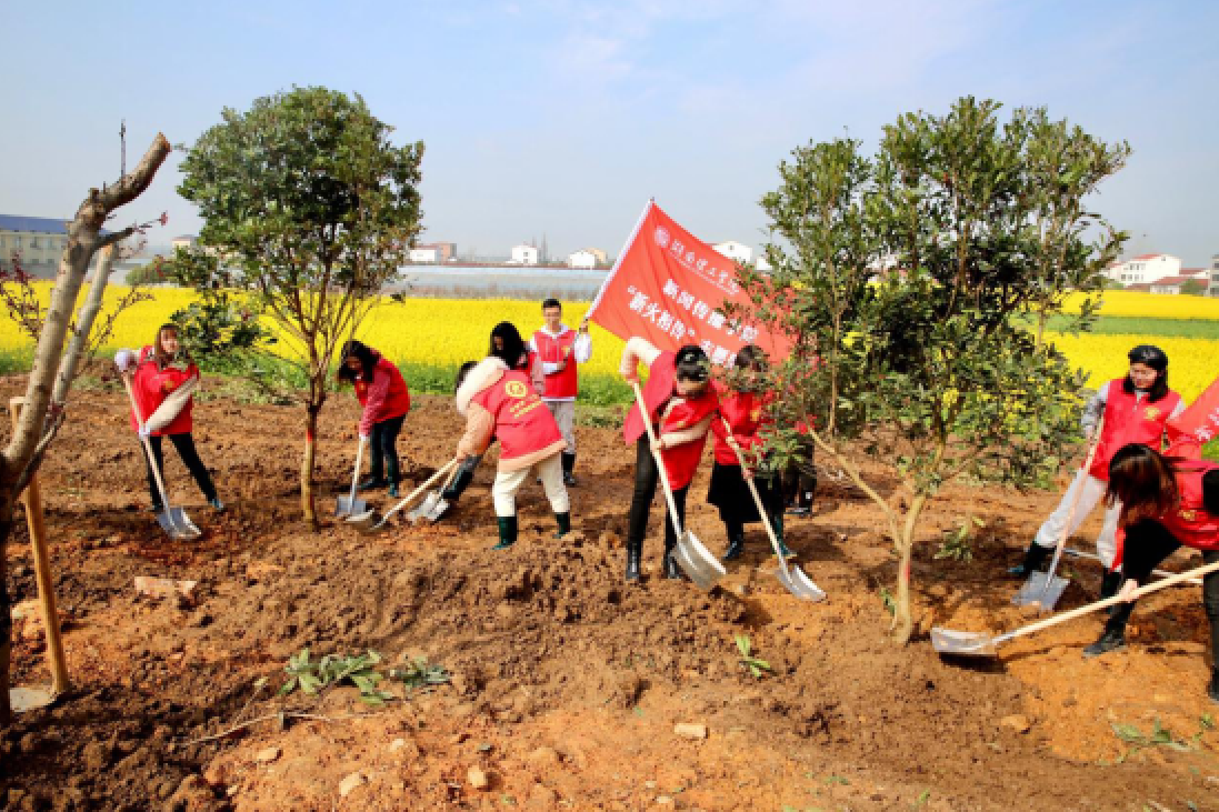 湖南理工学院新闻传播学院“新火相传”志愿服务队植树现场