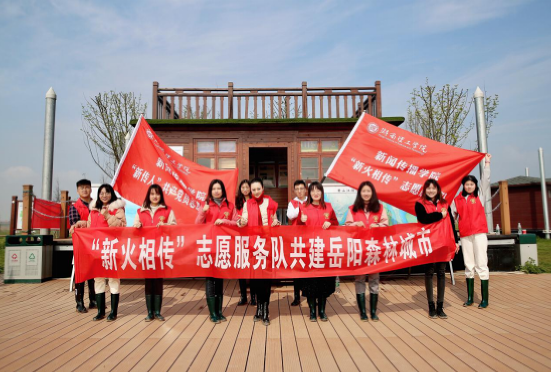 该校新闻传播学院“新火相传”志愿服务队以全国第43个植树节为契机,为岳阳市创建国家森林城市的攻坚年、决胜年助力,展开线上线下相结合,宣传推广与实践相结合的系列活动。团队志愿者前期在岳阳市林业局统一组织下向市民发放了4000份宣传单,设置横幅和宣传展板介绍2021年“互联网+义务植树”尽责形式参与方式和岳阳市创建国家森林城市的知识,呼吁市民积极参与爱林护林。